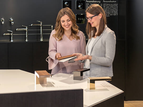 - Produkte zum Anfassen und Ausprobieren in den Markenwelten von AXOR und hansgrohe,